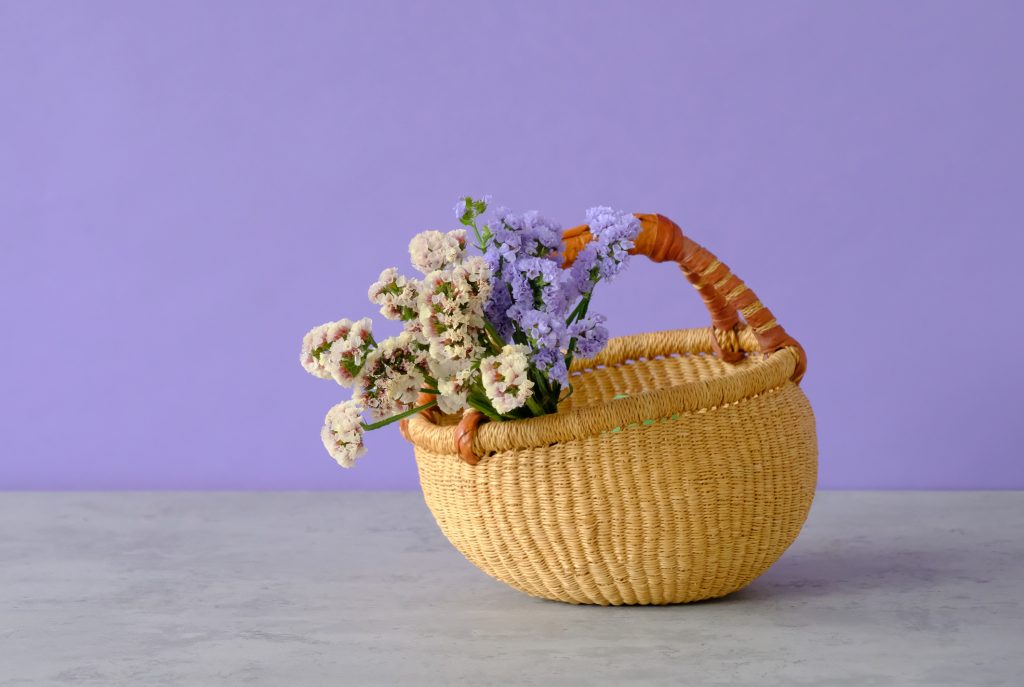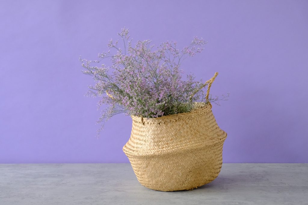 スターチスは、買ってすぐにバスケットなどに無造作に入れておくだけでも、きれいなドライフラワーになります。
