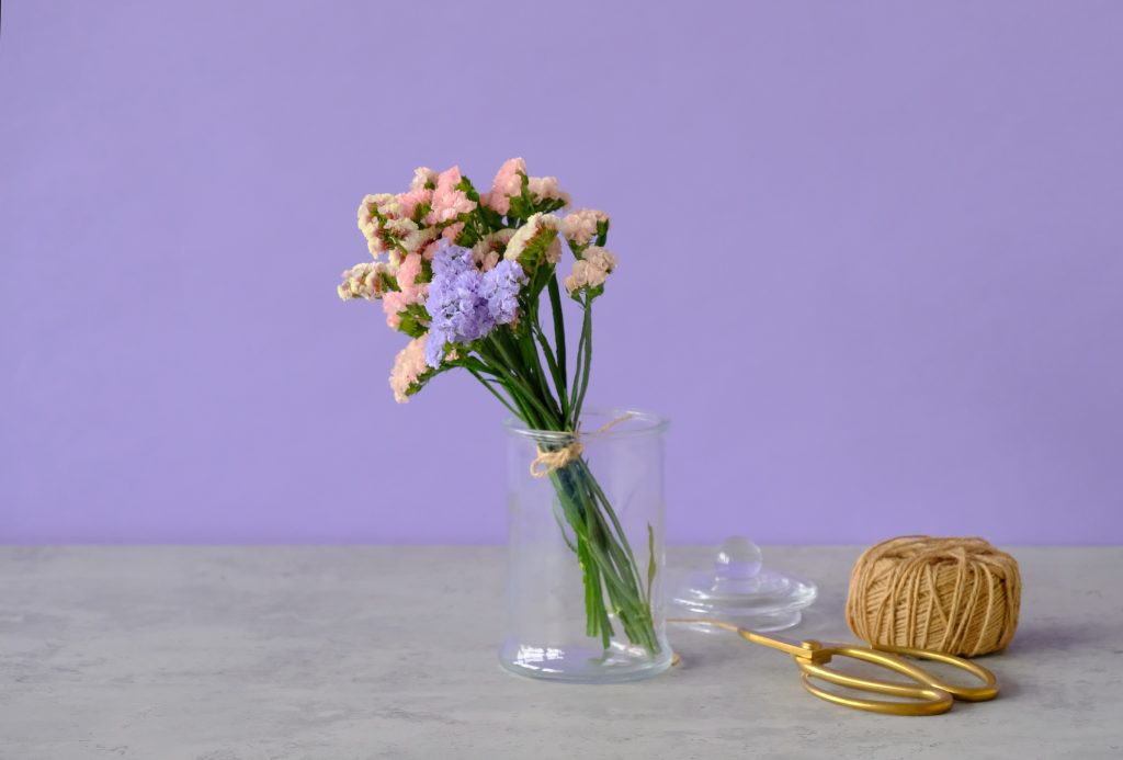 この季節にぴったりな、スターチスを使った花あしらいをご紹介します。