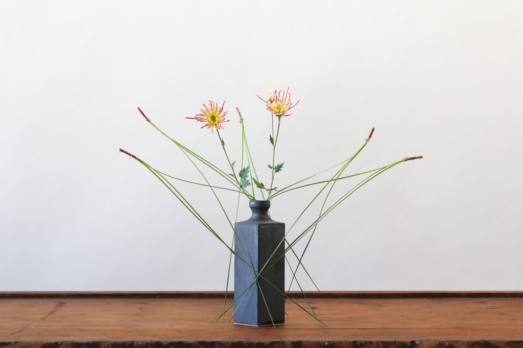 菊炭は保水をしないため、このような生け方をする際は、事前にしっかり水揚げをしておきましょう。