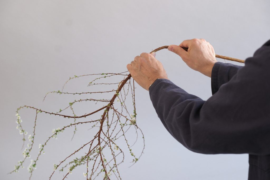 雪柳の枝はとてもしなやかで、枝を〈ためる〉ことができます。
