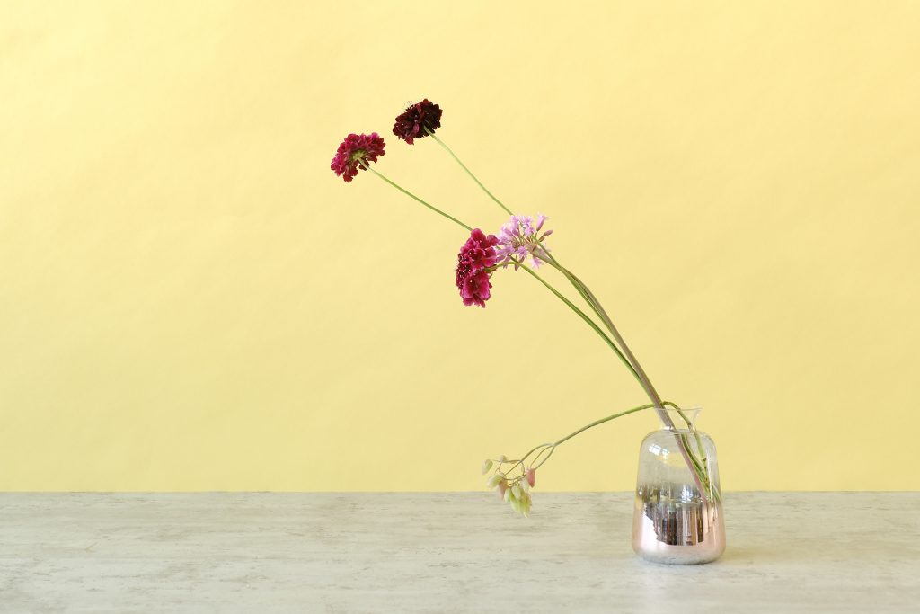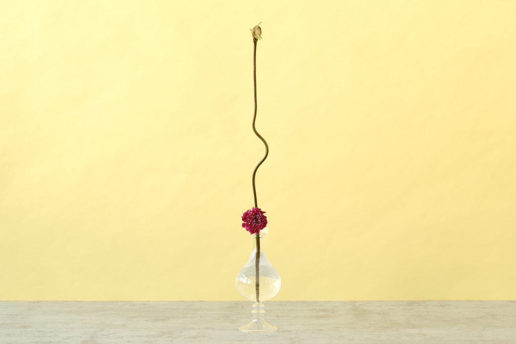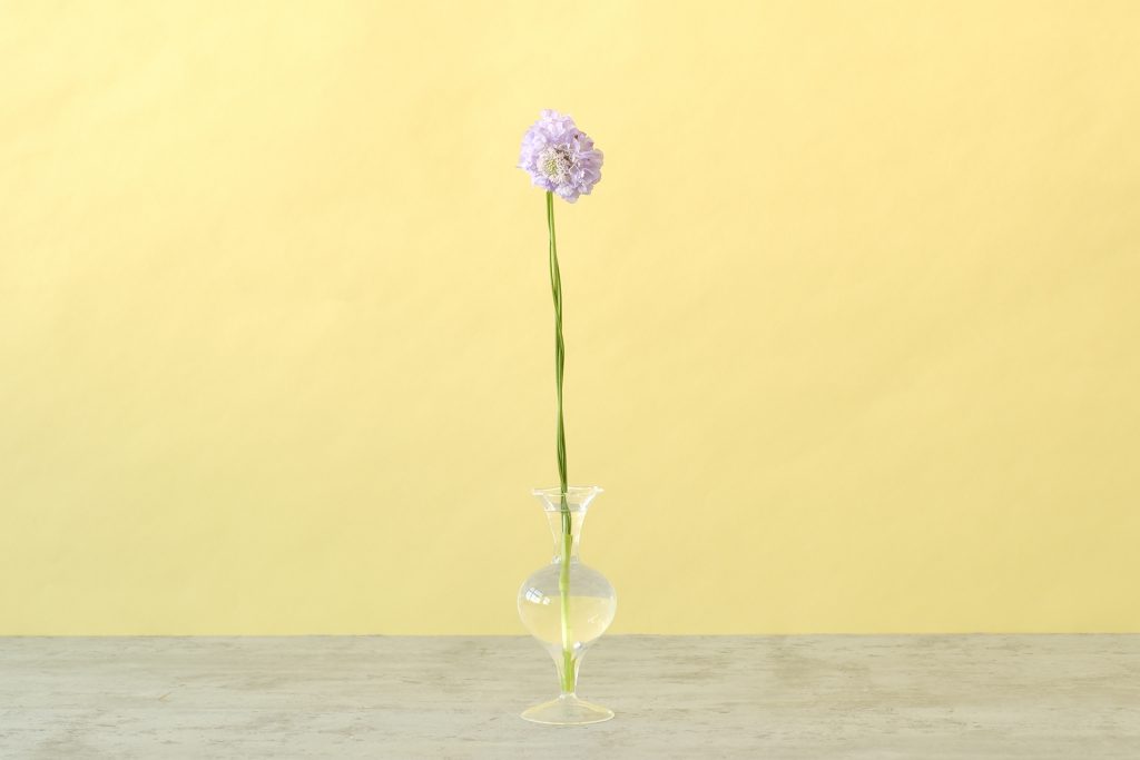 スカビオサの茎は細さが魅力ですが、それゆえに1本では花器の中でうまく固定できない場合があります。また、茎が細すぎて花器とのバランスが合わないことも。