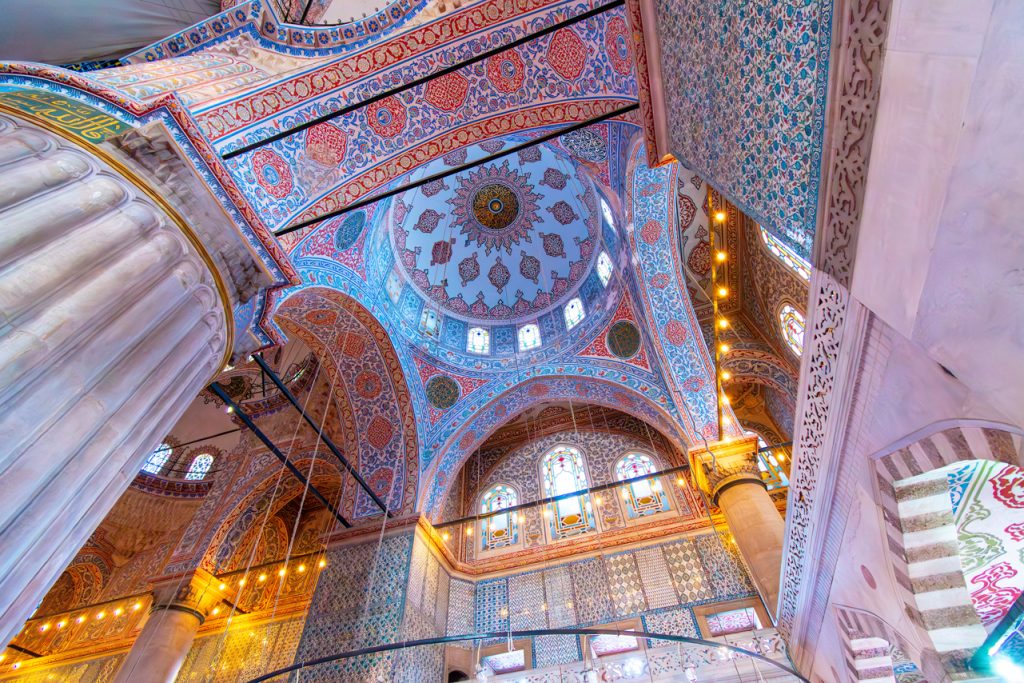 ブルーモスクやスレイマニエ・モスクなど、荘厳な建築の内部を彩るのは、幾何学や植物をモチーフとした細密な文様のタイルです。
