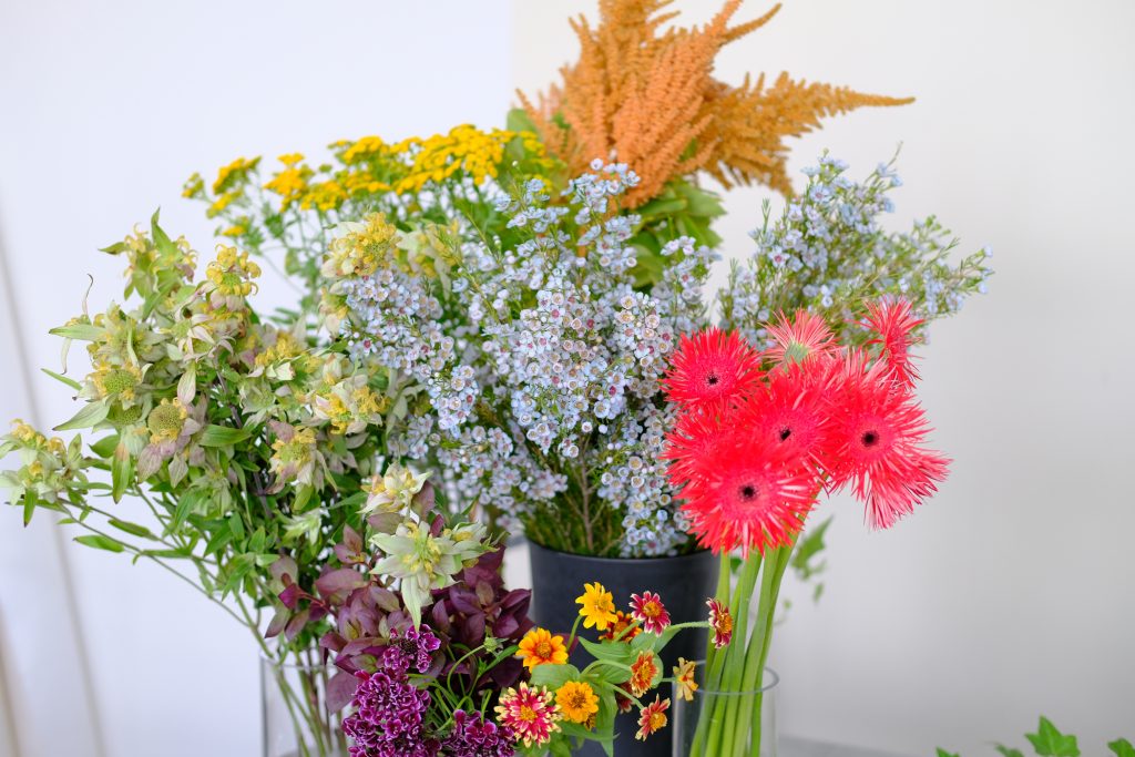 鮮やかな色と落ち着いた色、両方の花々が用意されました。
