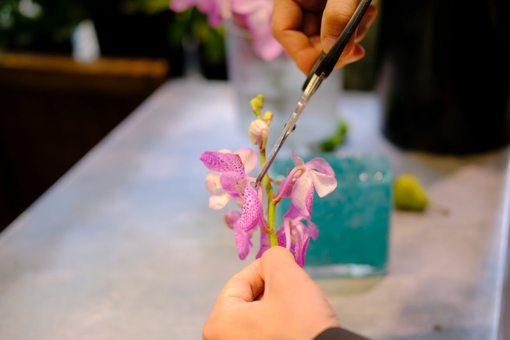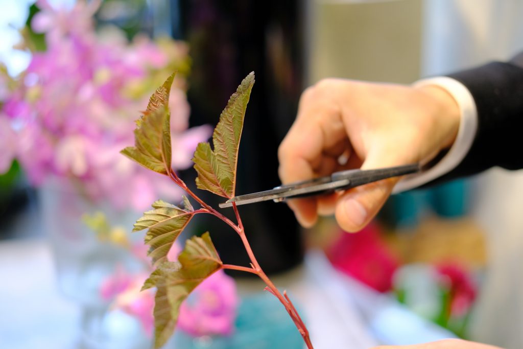 その際、茎の先を少しだけ切り戻すことで、水の吸い上げがよくなり、花もちがぐっとよくなります。
