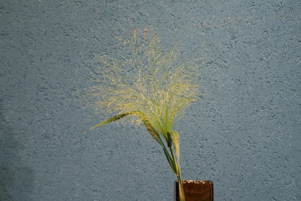「お月見の時期ではありますが、東京の10月第一週はまだ暑さの残る頃。そこで、さわやかな印象の実ものと穂ものを組み合わせました。普段は手に取らないような花材にも、ぜひチャレンジしてみてくださいね」