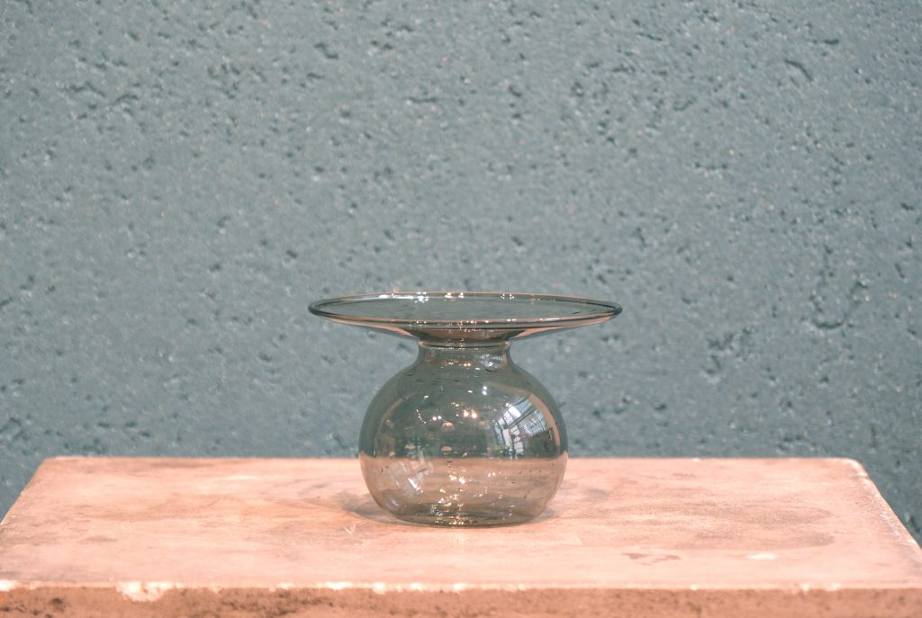 今回は、グラスを逆さにしたような淡いグレーのガラス花器を選びました。