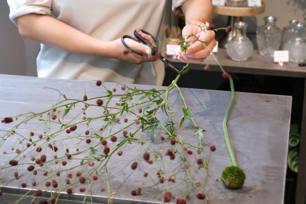 ガーベラもワレモコウも、水換えのタイミングで茎を切り戻すとより効果的です。