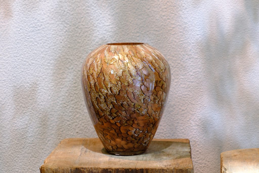 高さ約21cm・直径約16cmの、重厚感のある卵型の花器を選びました。