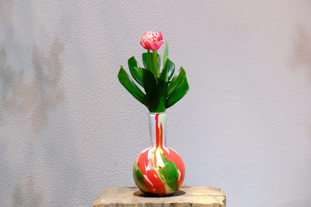 後半は抽象画のようなペイントが施された、ユニークな花器を選びました。