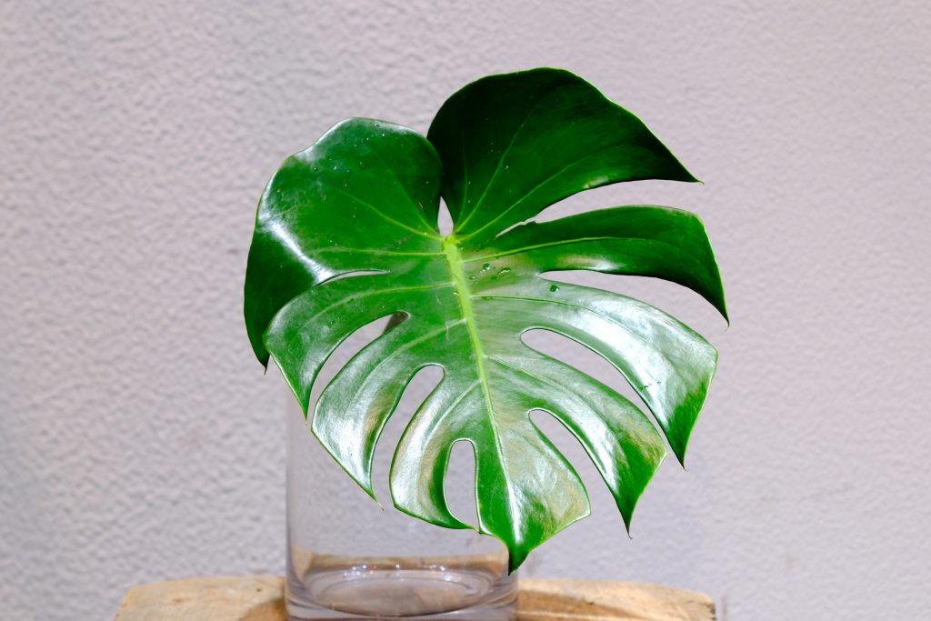 切れ込みの入った大きな葉が特徴のモンステラを合わせます。