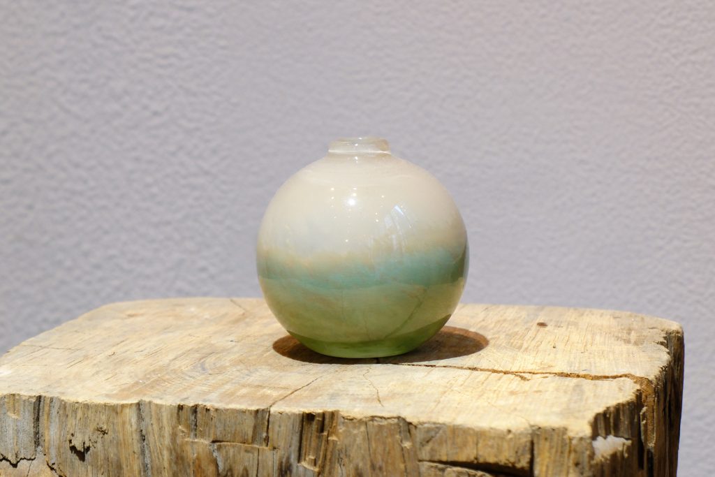 この花器のように口が小さいものは、一本でもバランスよく生けることができます。
