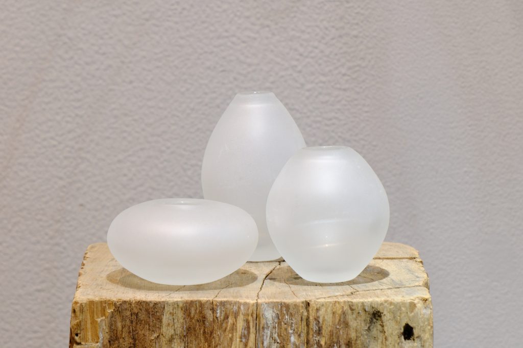 ここでは、同じシリーズの花器を使用しましたが、例えば透明なガラスで高さが異なるものなど、お手持ちの花器を組み合わせてみてください。