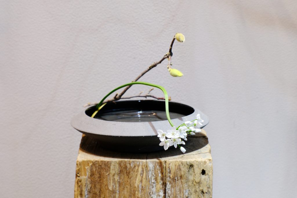 こうした花器でなくても、お皿や、水面が見えるような器でも代用できます。