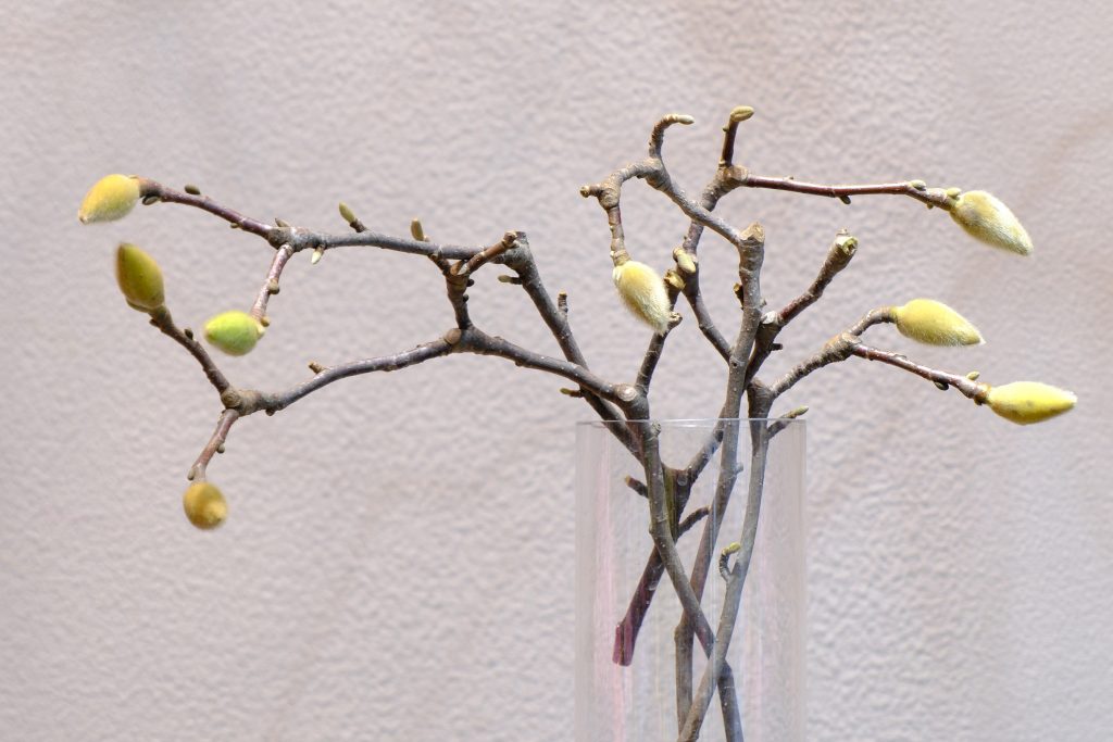 今回は、つぼみの状態のハクモクレンを花材として使用しています。