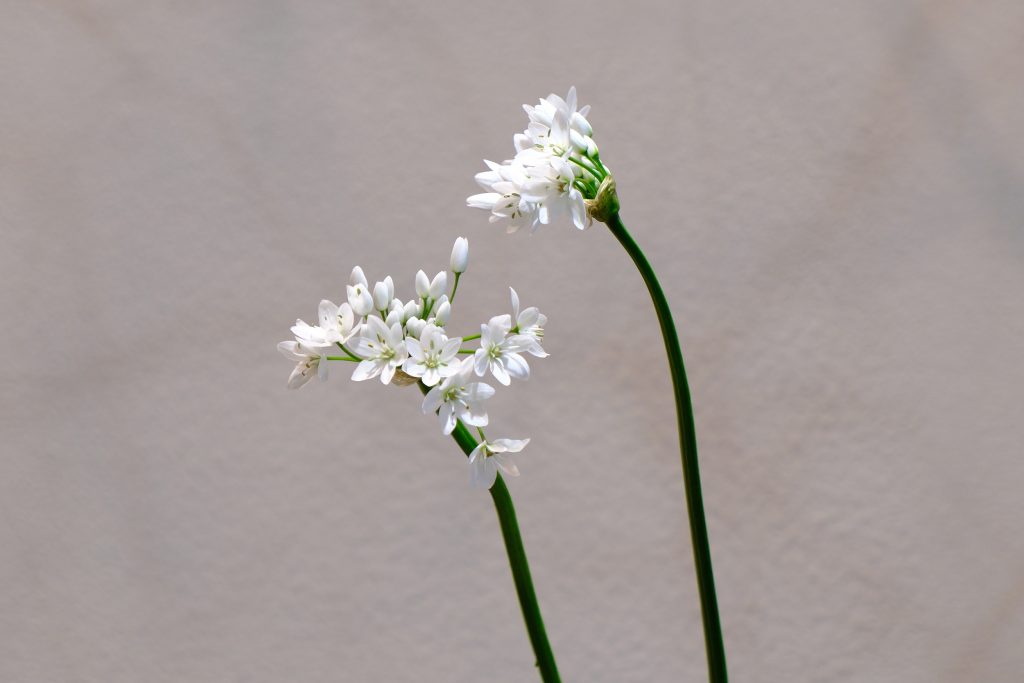 《アリウム コワニー》は、白い小花と、鮮やかな緑色の茎が特徴のヒガンバナ科 ネギ属の球根植物です。細くしなやかな茎の先に、星形の花を軽やかに広げる姿が印象的。