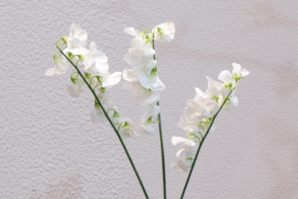 別名「サマースイートピー」とも呼ばれ、早春に出回るスイートピーに比べると、花弁はやや肉厚で小ぶり。