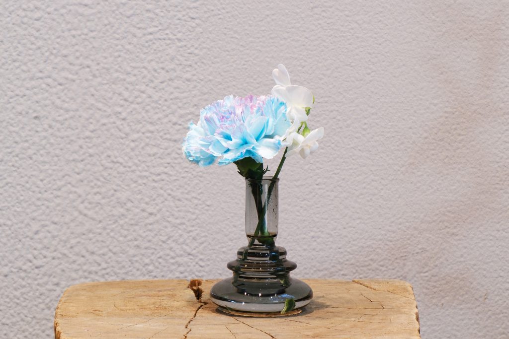 花のサイズに合わせて、花器もコンパクトなものを選びました。